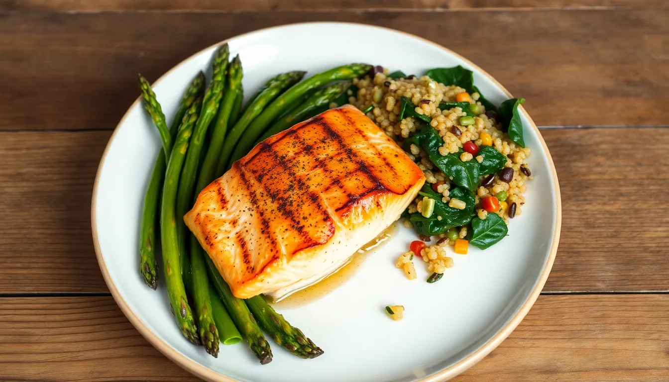 Roasted asparagus offers a tender texture and earthy flavor, perfect for balancing salmon’s richness. Grilled zucchini provides a mild taste and complements the dish’s smoky notes. Steamed broccoli adds a nutrient boost alongside vibrant green color, enhancing plate appeal. Sautéed spinach, seasoned with garlic, brings a savory element that pairs well with salmon’s buttery texture. Caramelized carrots introduce sweetness, creating a delightful contrast. These choices bring nutrition and color, elevating the overall dining experience.